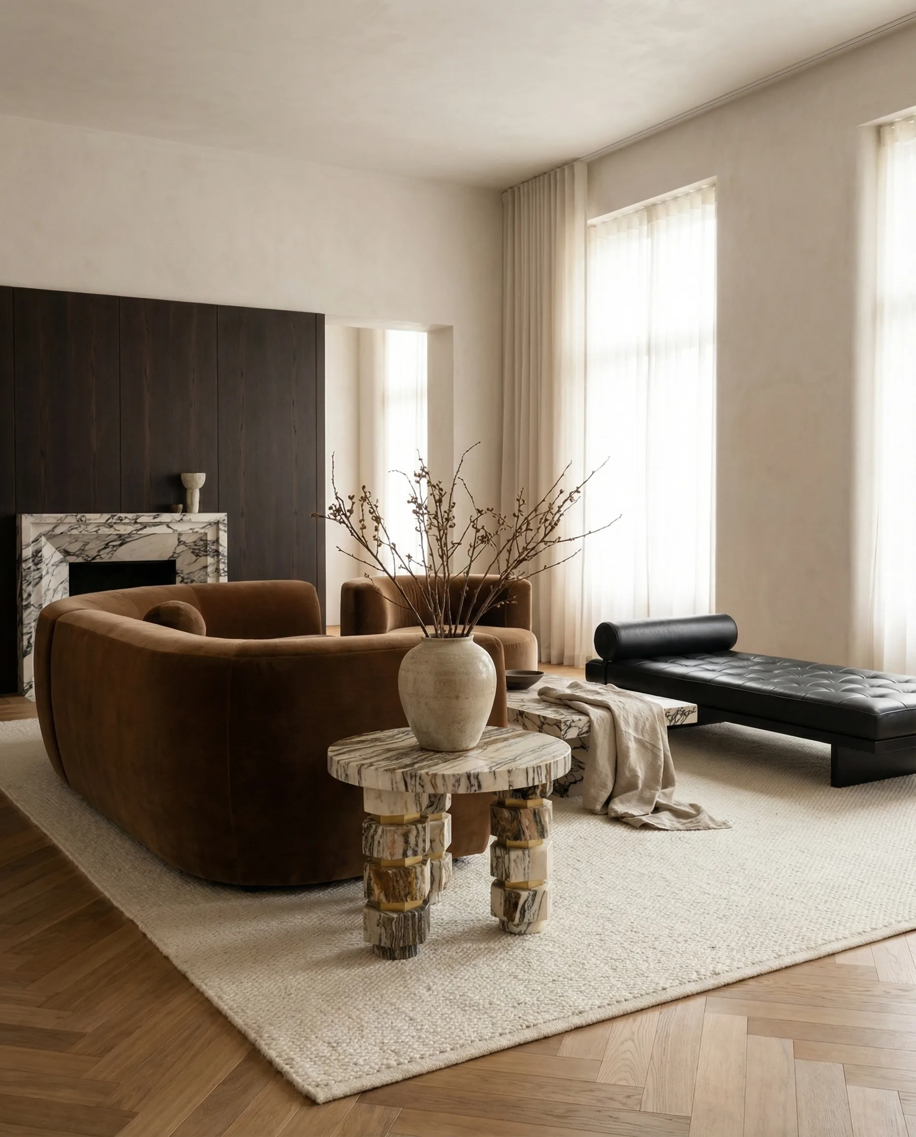 Anello holds a room together. The coffee table is the one piece of furniture that every seat faces — it becomes the ground beneath conversation, beneath objects, beneath light. In stone, it holds that gravity permanently and without effort.