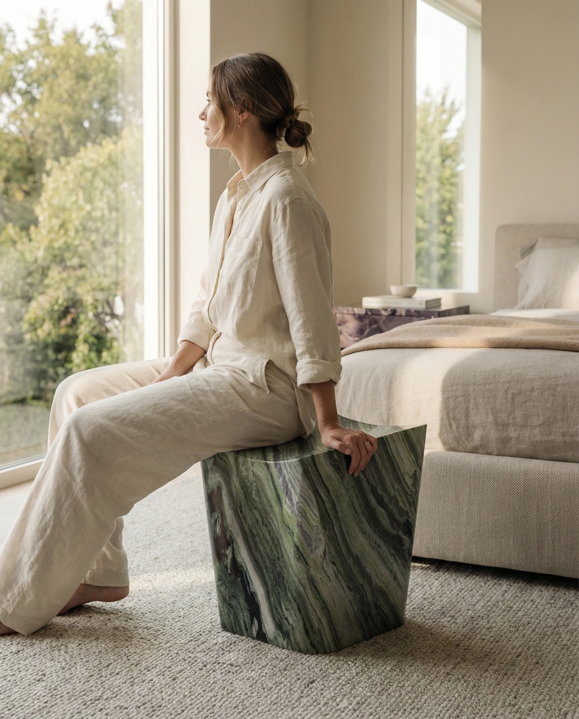 Cono is carved from Verde Patricia. The material is hand-selected for the quality of its veining, surface character, and geological depth. Contact us to begin your commission.