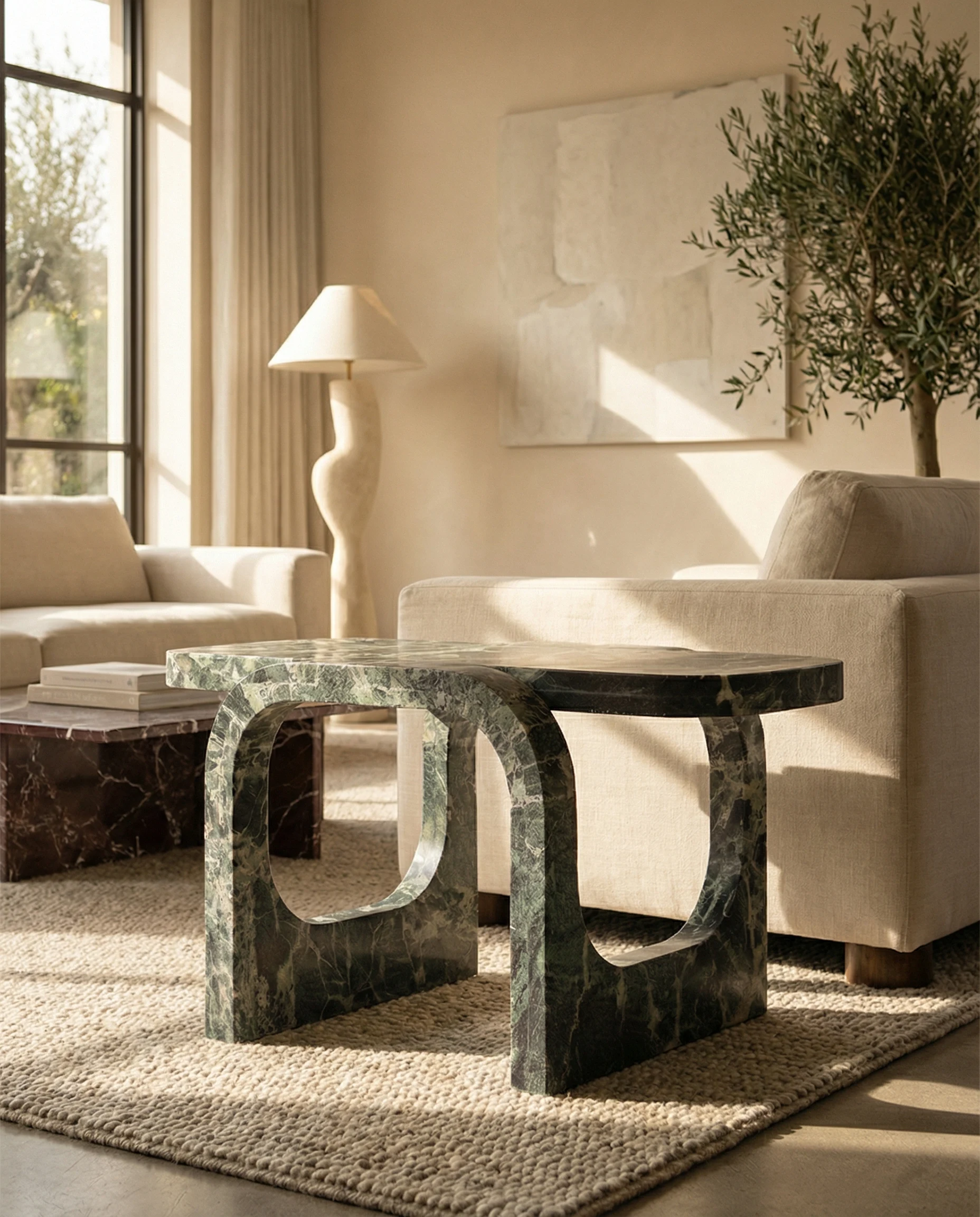 Yes. The Cut & Fold is a functional side table, not a sculpture. Its top surface is fully usable — flat, stable, and appropriately sized for a glass, book, or lamp. The honed finish is practical and forgiving of daily contact. As with all marble surfaces, acidic liquids should be wiped promptly and coasters are recommended for drinks, but the piece is designed for living environments.