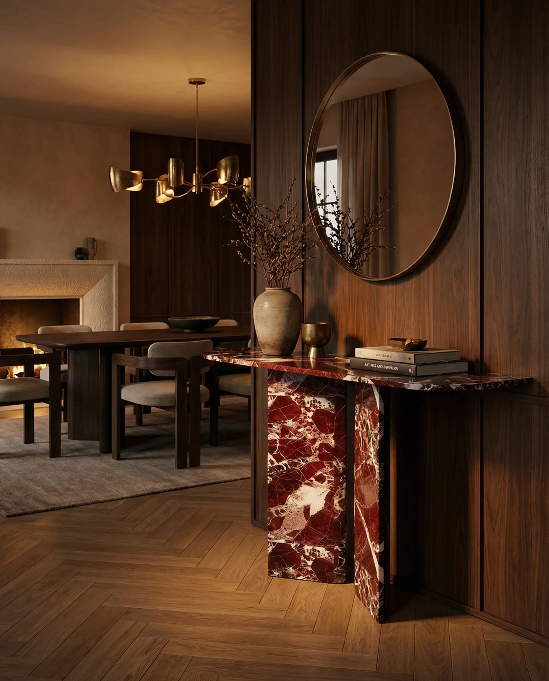 Vela is designed to own the moment of arrival. A console announces a room before the room is seen — it sets the register for everything that follows. The material, the proportion, the finish: all conspire to make a statement in the narrow architecture of a threshold.
